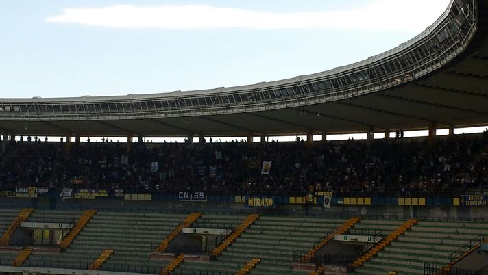 Nella foto, i supporters dell'Inter in trasferta al Bentegodi.