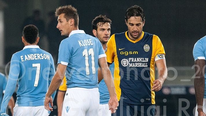 La formazione di Mandorlini cerca l’avanzata sull’asse Hallfredsson-Tachtsidis, il greco serve in profondità Toni anticipato dalla diagonale di De Vrij al 3’. Passa un minuto e la Lazio sblocca il risultato: cross dalla destra di Basta, Felipe Anderson approfitta dello spazio concesso a centro area per battere l’estremo difensore scaligero con un colpo di testa. Gialloblù vicini al pari al minuto numero 12 sugli sviluppi di una punizione dalla trequarti di Hallfredsson. Moras calcia al volo sul traversone dell’islandese, la palla viene leggermente deviata da Parolo per poi stamparsi sul palo. Scampato il pericolo, i biancocelesti sfiorano il raddoppio al 16’. Felipe Anderson s’inserisce fra le linee e verticalizza per Biglia, appoggio per Klose che calcia addosso a Benussi dai sedici metri.