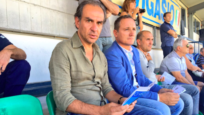 C'è anche Filippo Fusco, assieme al responsabile del settore giovanile gialloblù, Giancarlo Filippini, in tribuna sul campo di Vigasio per seguire la Primavera dell'Hellas, impegnata in questi minuti nella gara con il Trapani, gara valida per la seconda giornata del torneo di categoria (foto hellasverona.it).