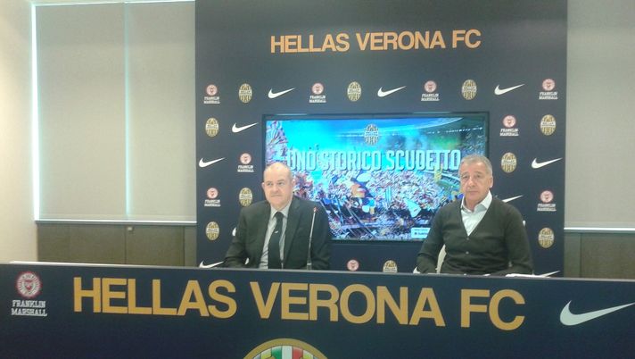 Il dg dell'Hellas, Giovanni Gardini, insieme a Domenico Penzo, presidente dell'Asd degli ex calciatori gialloblù, ha illustrato i vari eventi in programma.