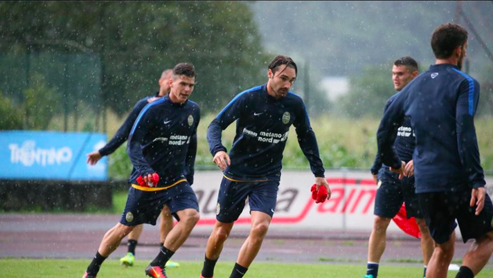 I gialloblù si sono allenati stamattina (foto Grigolini-Fotoexpress) e nel pomeriggio torneranno a Peschiera del Garda.