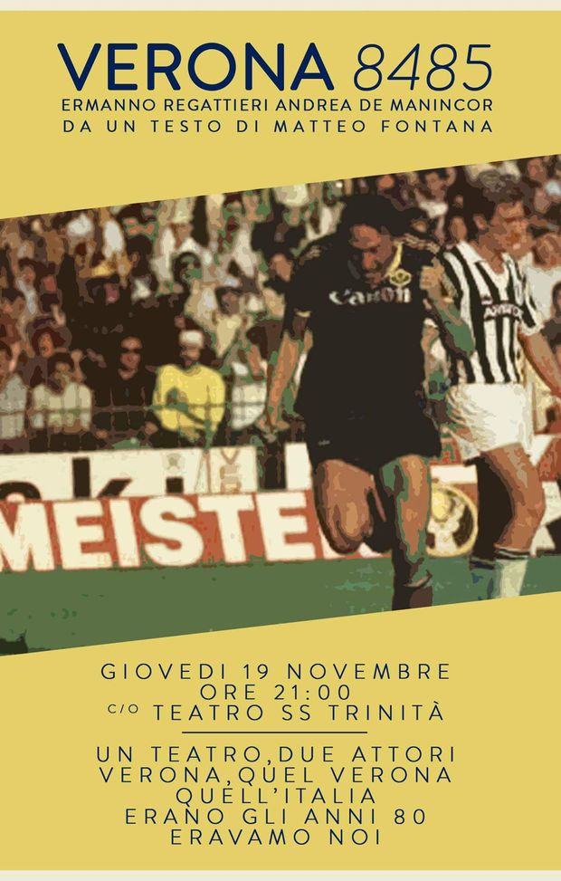 "Lo spettacolo sulla Verona tricolore scritto da Matteo Fontana, arrangiato e messo in scena da Andrea De Manincor ed Ermanno Regattieri con la collaborazione di Estravagatrio Teatro. La rappresentazione ha come tema la Verona dell'anno dello scudetto, tra la gioia per l'impresa gialloblù e uno sguardo alla realtà sociale e politica dell'epoca. Il teatro si trova in via SS. Trinità 4.