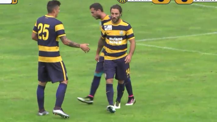 Il primo gol stagionale dei gialloblù porta la firma di Siligardi, che sblocca il match dopo otto minuti, mentre Pisano, poco dopo, sigla il 2-0 di testa. Luppi e Pazzini, quindi, con una doppietta a testa, portano il punteggio sul 6-0 al termine del primo tempo.