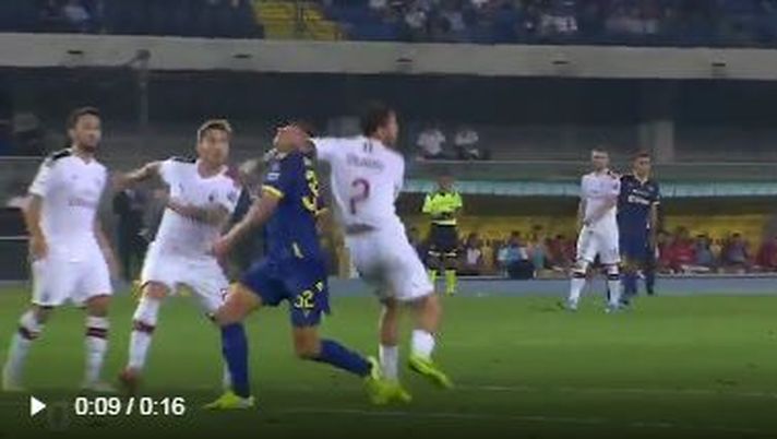 Le immagini del fallo del terzino del Milan sul giocatore del Verona